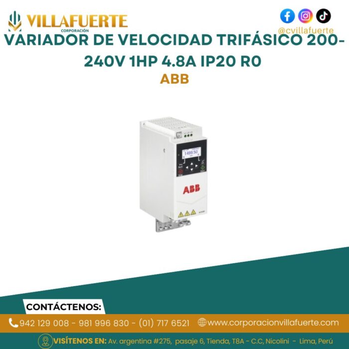 Variador de velocidad trifásico 200-240V 1HP 4.8A IP20 R0 ABB