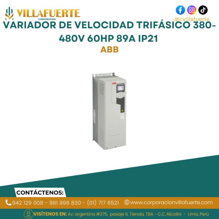 Variador de velocidad trifásico 380-480V 60HP 89A IP21 ABB
