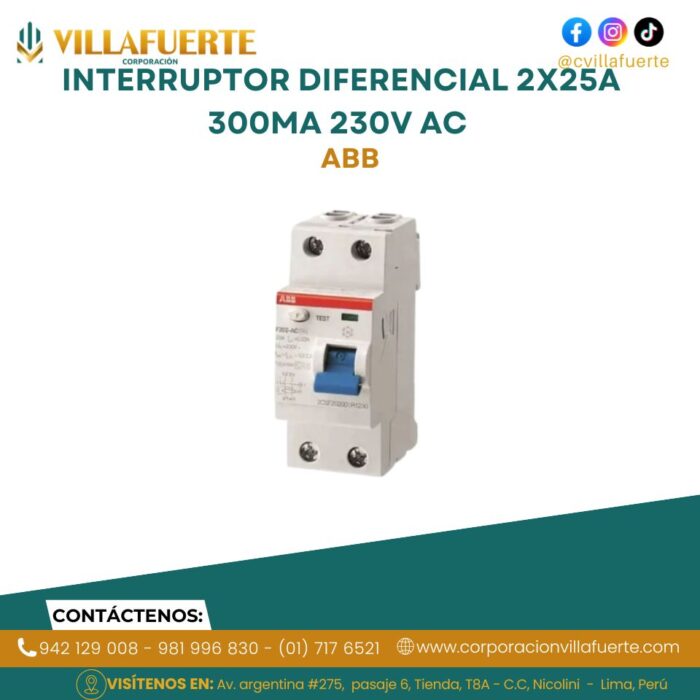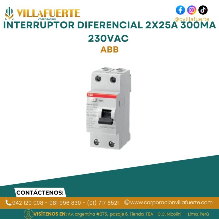 Interruptor diferencial 2x25A 300mA 230V AC ABB