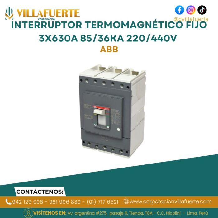 Interruptor termomagnético fijo 3x630A 85/36kA 220/440V ABB