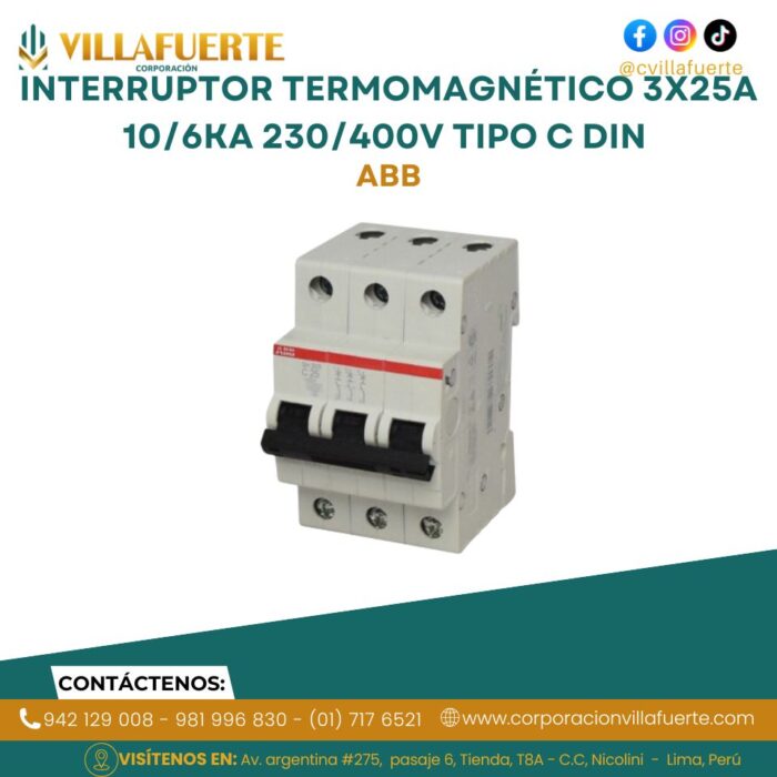 Interruptor termomagnético 3x25A 10/6kA 230/400V tipo C DIN ABB