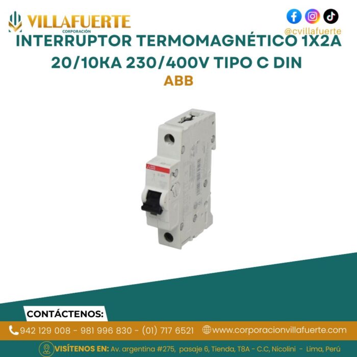 Interruptor termomagnético 1x2A 20/10kA 230/400V tipo C DIN ABB