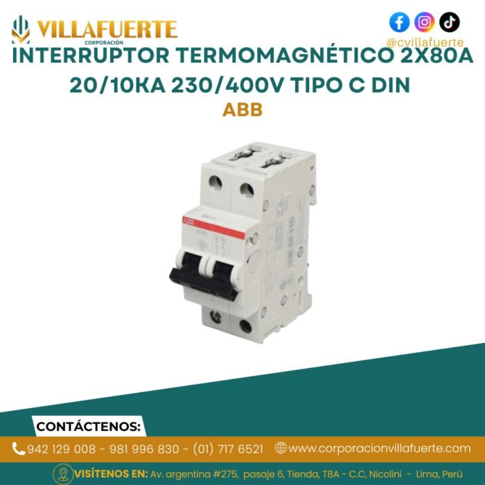 Interruptor termomagnético 2x80A 20/10kA 230/400V tipo C DIN ABB