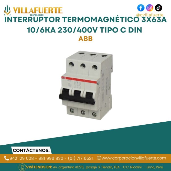 Interruptor termomagnético 3x63A 10/6kA 230/400V tipo C DIN ABB