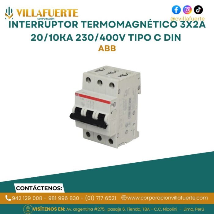 Interruptor termomagnético 3x2A 20/10kA 230/400V tipo C DIN ABB