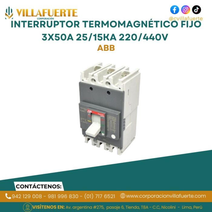 Interruptor termomagnético fijo 3x50A 25/15kA 220/440V ABB