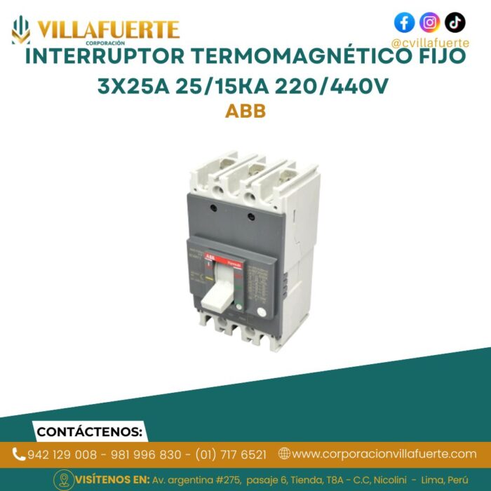 Interruptor termomagnético fijo 3x25A 25/15kA 220/440V ABB