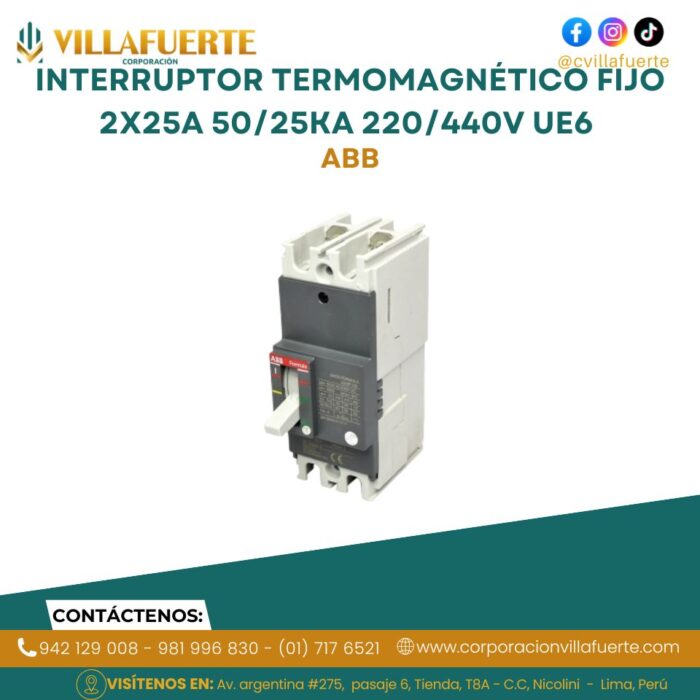 Interruptor termomagnético fijo 2x25A 50/25kA 220/440V UE6 ABB
