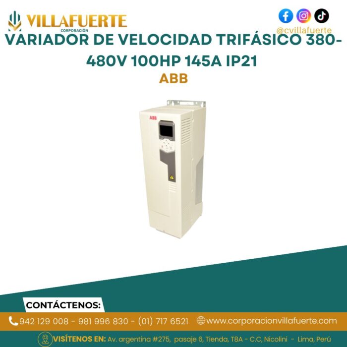 Variador de velocidad trifásico 380-480V 100HP 145A IP21 ABB