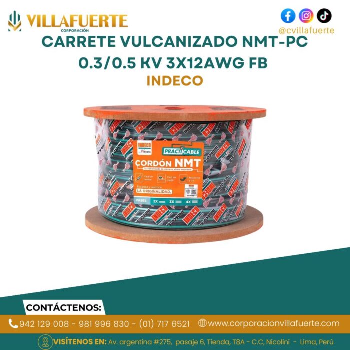 Carrete vulcanizado Nmt-pc 0.3/0.5 Kv 3x12awg Fb INDECO