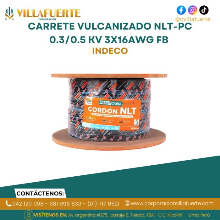 Carrete vulcanizado Nlt-pc 0.3/0.5 Kv 3x16awg Fb – Venta por metro lineal INDECO