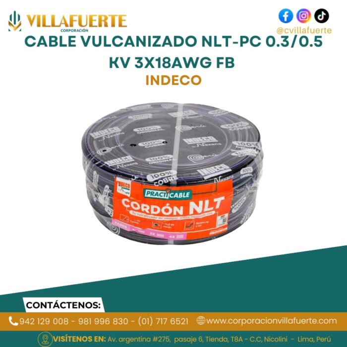 Cable vulcanizado Nlt-pc 0.3/0.5 Kv 3x18awg INDECO