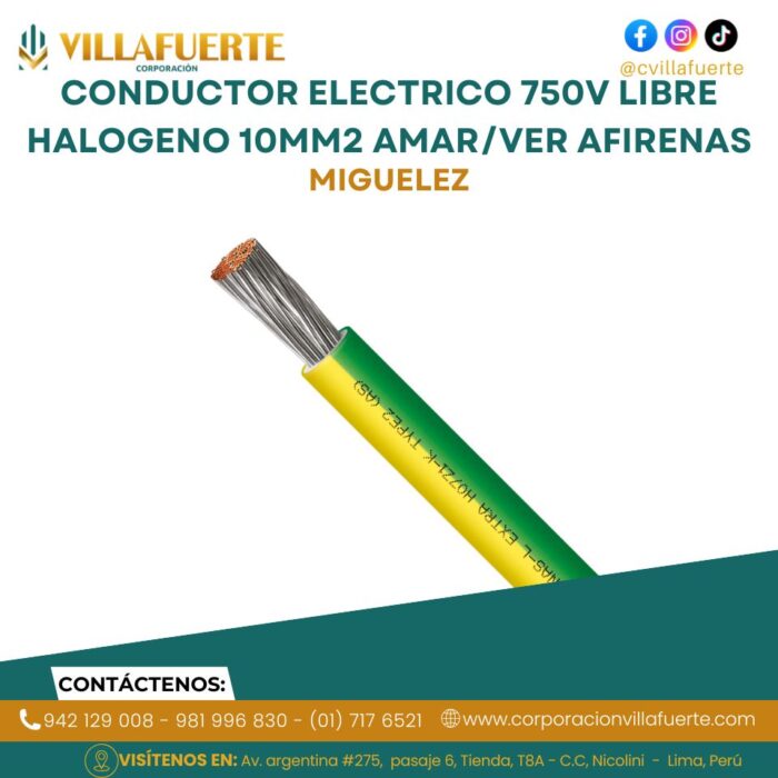 Cables eléctricos CONDUCTOR ELECTRICO 750V LIBRE HALOGENO 10MM2 AMAR/VERDE AFIRENAS L H07Z1-K MIGUELEZ