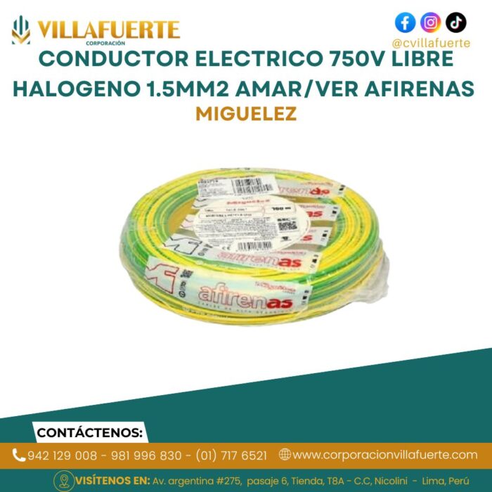 Cables eléctricos CONDUCTOR ELECTRICO 750V LIBRE HALOGENO 1.5MM2 AMAR/VERDE AFIRENAS L H07Z1-K MIGUELEZ