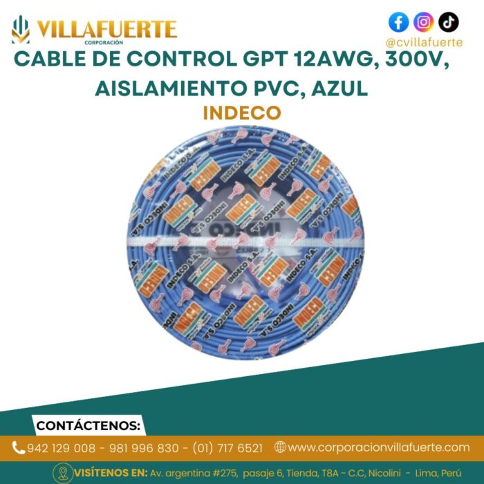 Cable de control GPT 12AWG, 300V, aislamiento PVC, azul