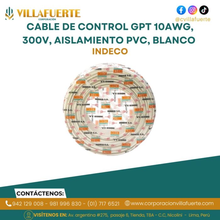 Cable de control GPT 10AWG, 300V, aislamiento PVC, blanco INDECO