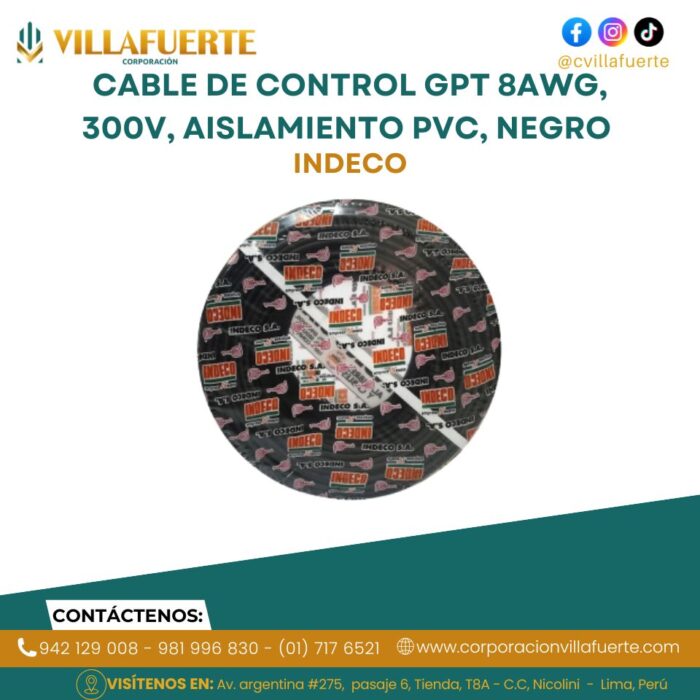 Cable de control GPT 8AWG, 300V, aislamiento PVC, negro INDECO