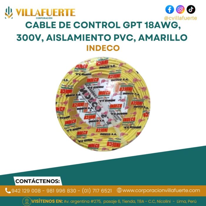 Cable de control GPT 18AWG, 300V, aislamiento PVC, amarillo INDECO
