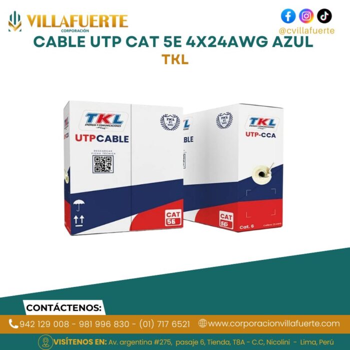 Cable UTP cat 5E 4x24AWG azul – Venta por metro lineal Tkl