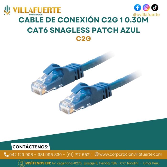 Cable de Conexión C2G 1 0.30M Cat6 Snagless Patch Azul