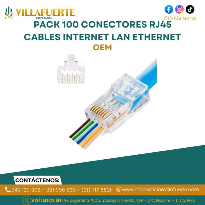 Pack 100 Conectores RJ45 Cables Internet LAN Ethernet