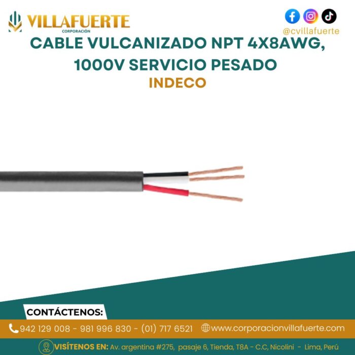 Cable vulcanizado NPT 4x8AWG, 1000V servicio pesado INDECO