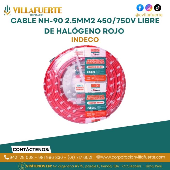 Cable NH-90 2.5mm2 450/750V libre de halógeno rojo INDECO