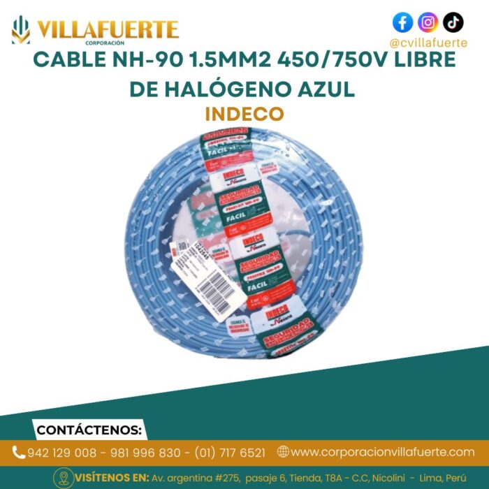 Cable NH-90 1.5mm2 450/750V libre de halógeno azul INDECO