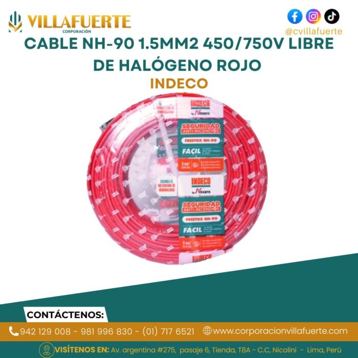 Cable NH-90 1.5mm2 450/750V libre de halógeno rojo INDECO