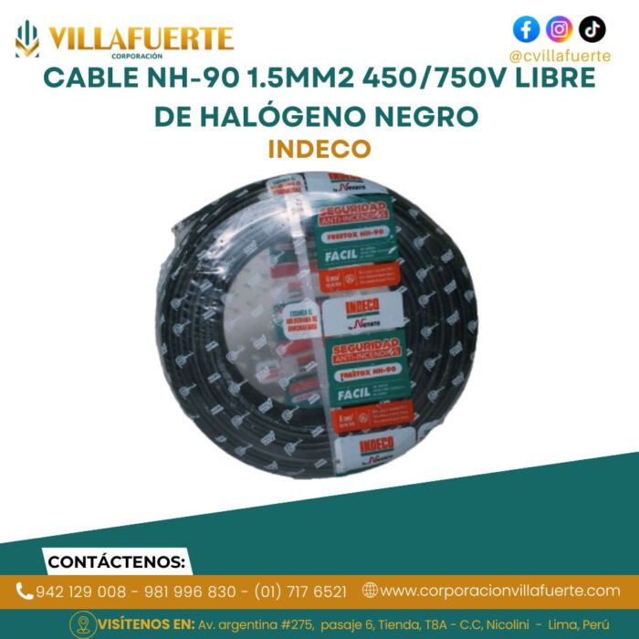 Cable NH-90 1.5mm2 450/750V libre de halógeno negro INDECO