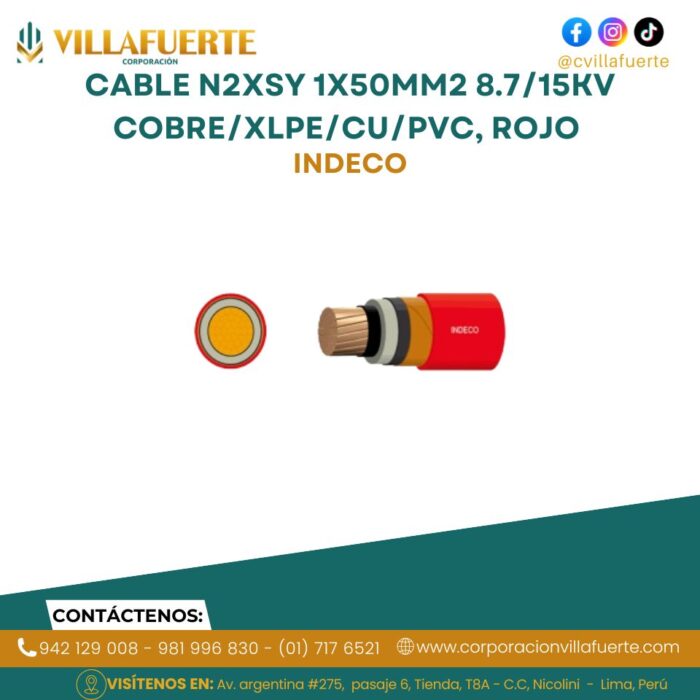 Cable N2XSY 1x50mm2 8.7/15kV COBRE/XLPE/CU/PVC, rojo INDECO