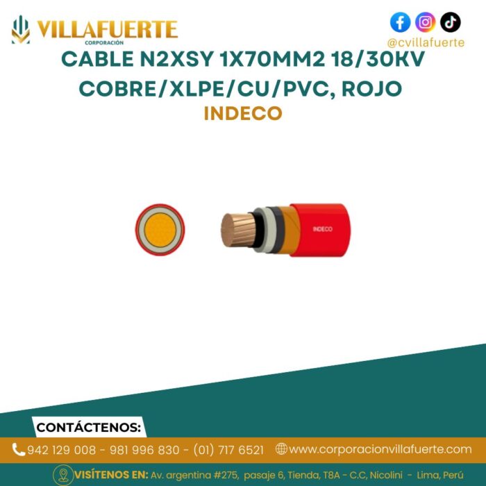 Cable N2XSY 1x70mm2 18/30kV COBRE/XLPE/CU/PVC, rojo INDECO