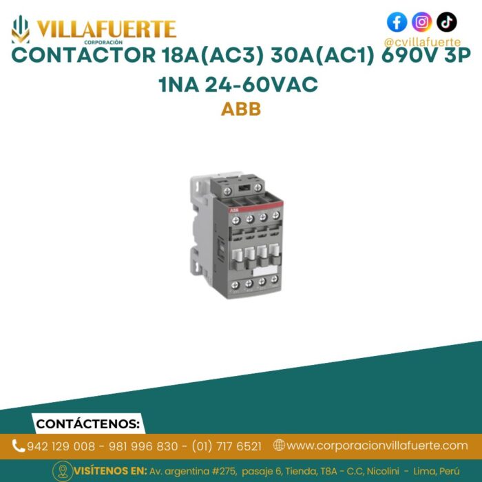 Contactor 18A(AC3) 30A(AC1) 690V 3P 1NA 24-60VAC ABB