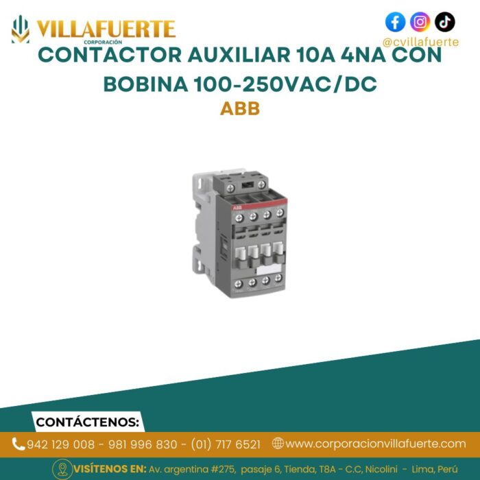 Contactor auxiliar 10A 4NA con bobina 100-250VAC/DC ABB