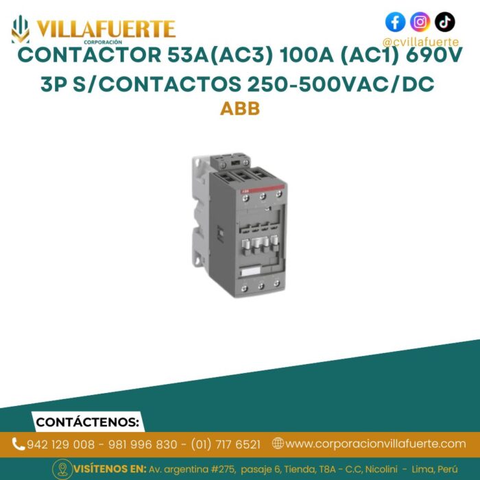 Contactor 53A(AC3) 100A (AC1) 690V 3P s/contactos 250-500VAC/DC ABB
