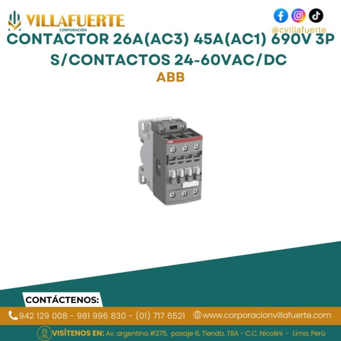 Contactor 26A(AC3) 45A(AC1) 690V 3P s/contactos 24-60VAC/DC ABB