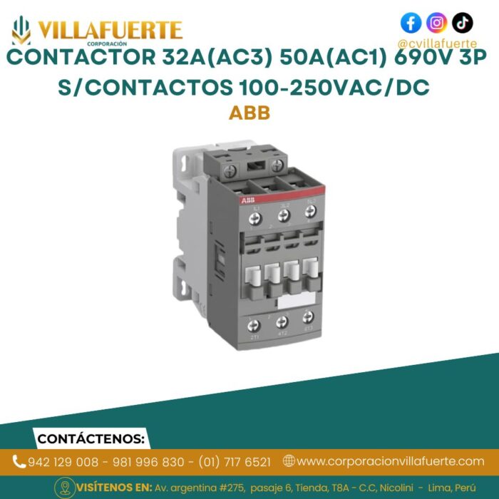 Contactor 32A(AC3) 50A(AC1) 690V 3P s/contactos 100-250VAC/DC ABB