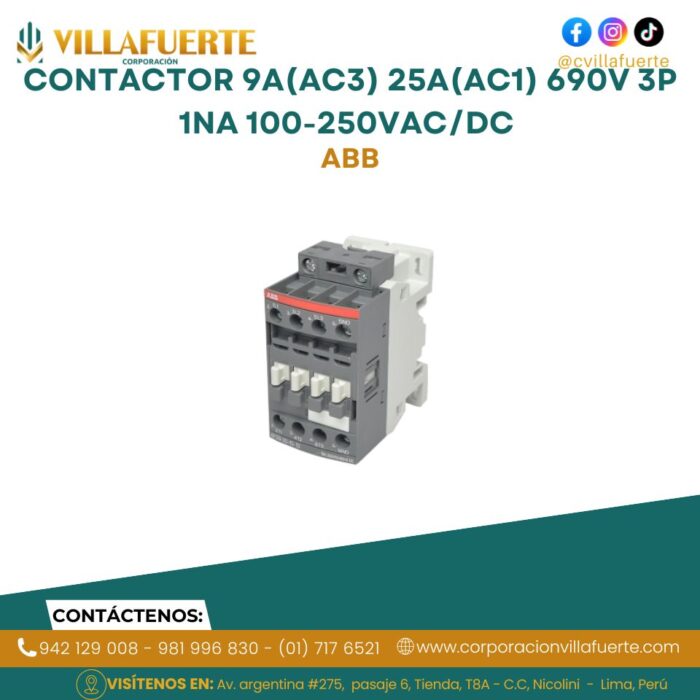 Contactor 9A(AC3) 25A(AC1) 690V 3P 1NA 100-250VAC/DC ABB