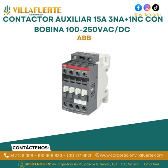 Contactor auxiliar 15A 3NA+1NC con bobina 100-250VAC/DC ABB