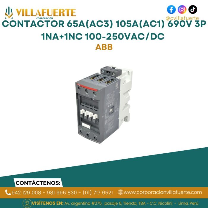 Contactor 65A(AC3) 105A(AC1) 690V 3P 1NA+1NC 100-250VAC/DC ABB