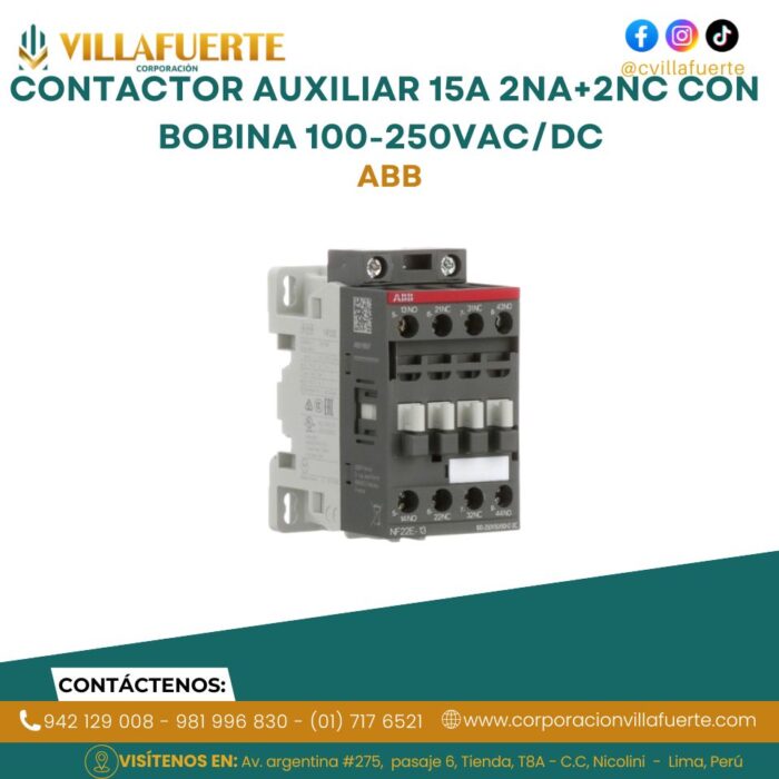 Contactor auxiliar 15A 2NA+2NC con bobina 100-250VAC/DC ABB
