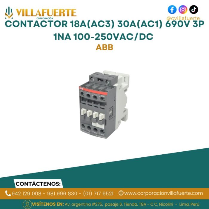 Contactor 18A(AC3) 30A(AC1) 690V 3P 1NA 100-250VAC/DC ABB