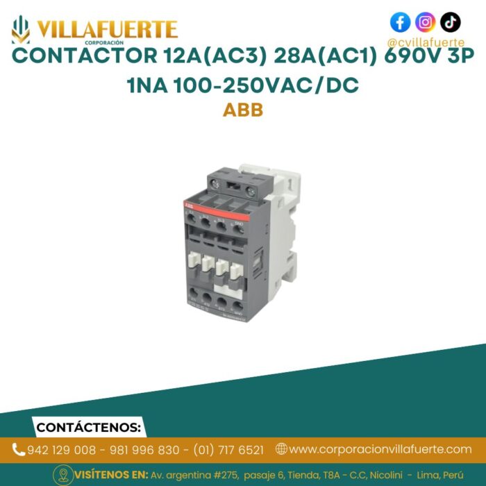 Contactor 12A(AC3) 28A(AC1) 690V 3P 1NA 100-250VAC/DC ABB