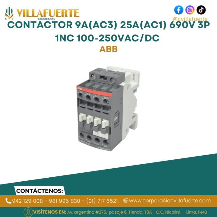 Contactor 9A(AC3) 25A(AC1) 690V 3P 1NC 100-250VAC/DC ABB