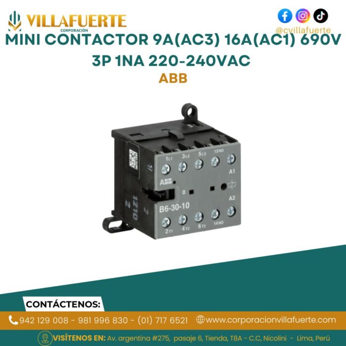 Mini contactor 9A(AC3) 16A(AC1) 690V 3P 1NA 220-240VAC ABB