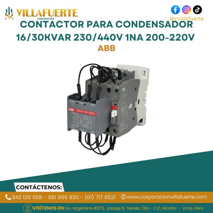 Contactor para condensador 16/30kVAR 230/440V 1NA 200-220V ABB