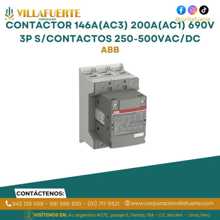 Contactor 146A(AC3) 200A(AC1) 690V 3P s/contactos 250-500VAC/DC ABB