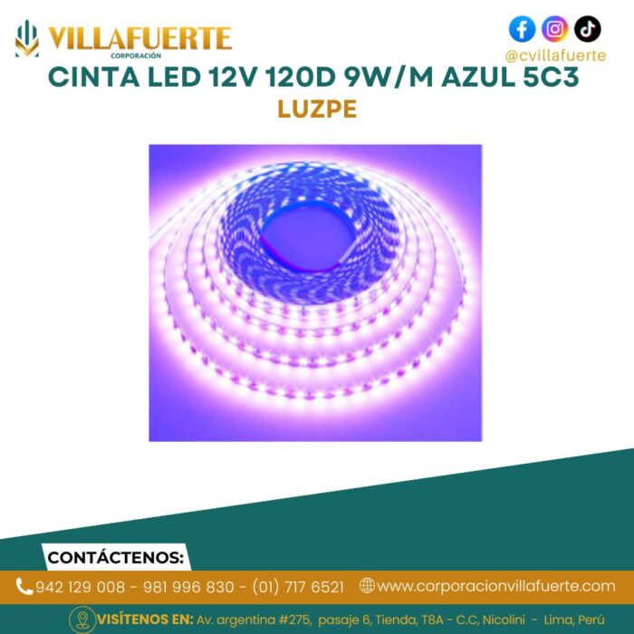 CINTA LED 12V 120D 9W/M AZUL 5C3 LUZPE