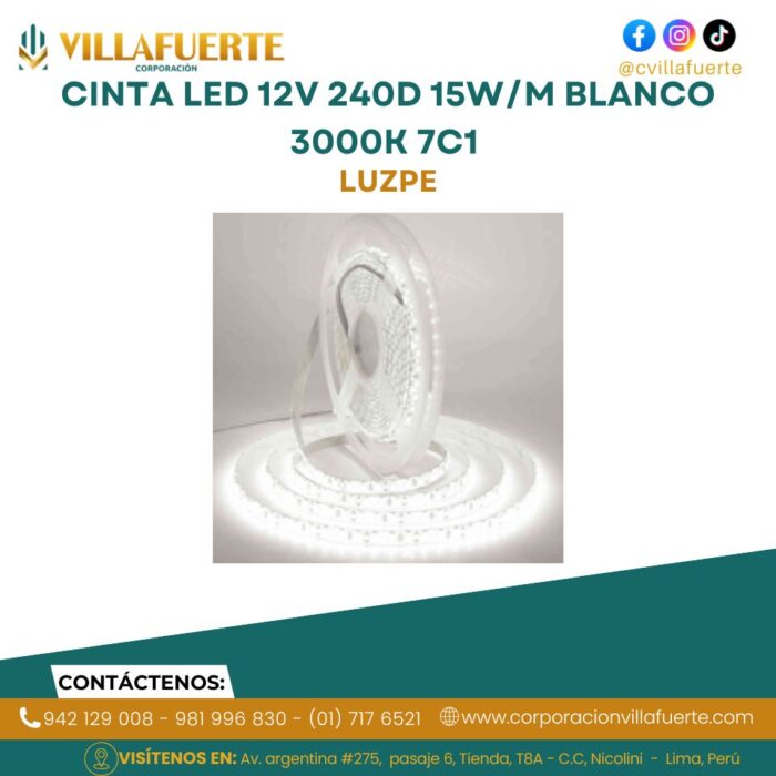 CINTA LED 12V 240D 15W/M BLANCO 3000K 7C1 LUZPE