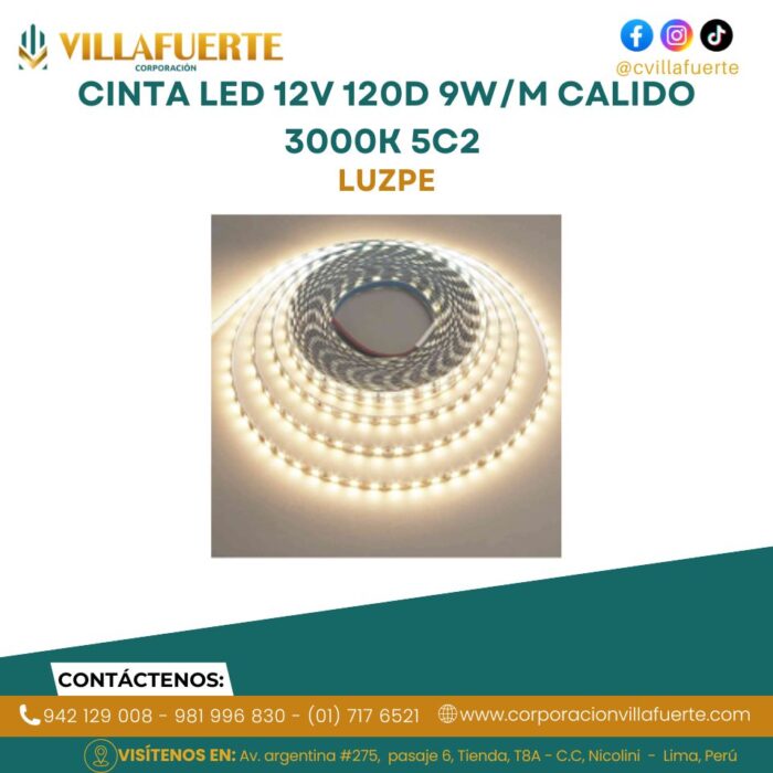 CINTA LED 12V 120D 9W/M CALIDO 3000K 5C2 LUZPE